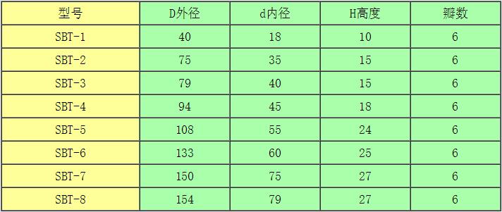 尺寸系列及公差: 單位:mm