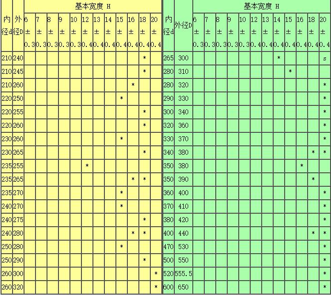 內(nèi)包骨架旋轉(zhuǎn)唇型密封圈唇口、副唇口過盈量和內(nèi)徑極限偏差 單位:mm